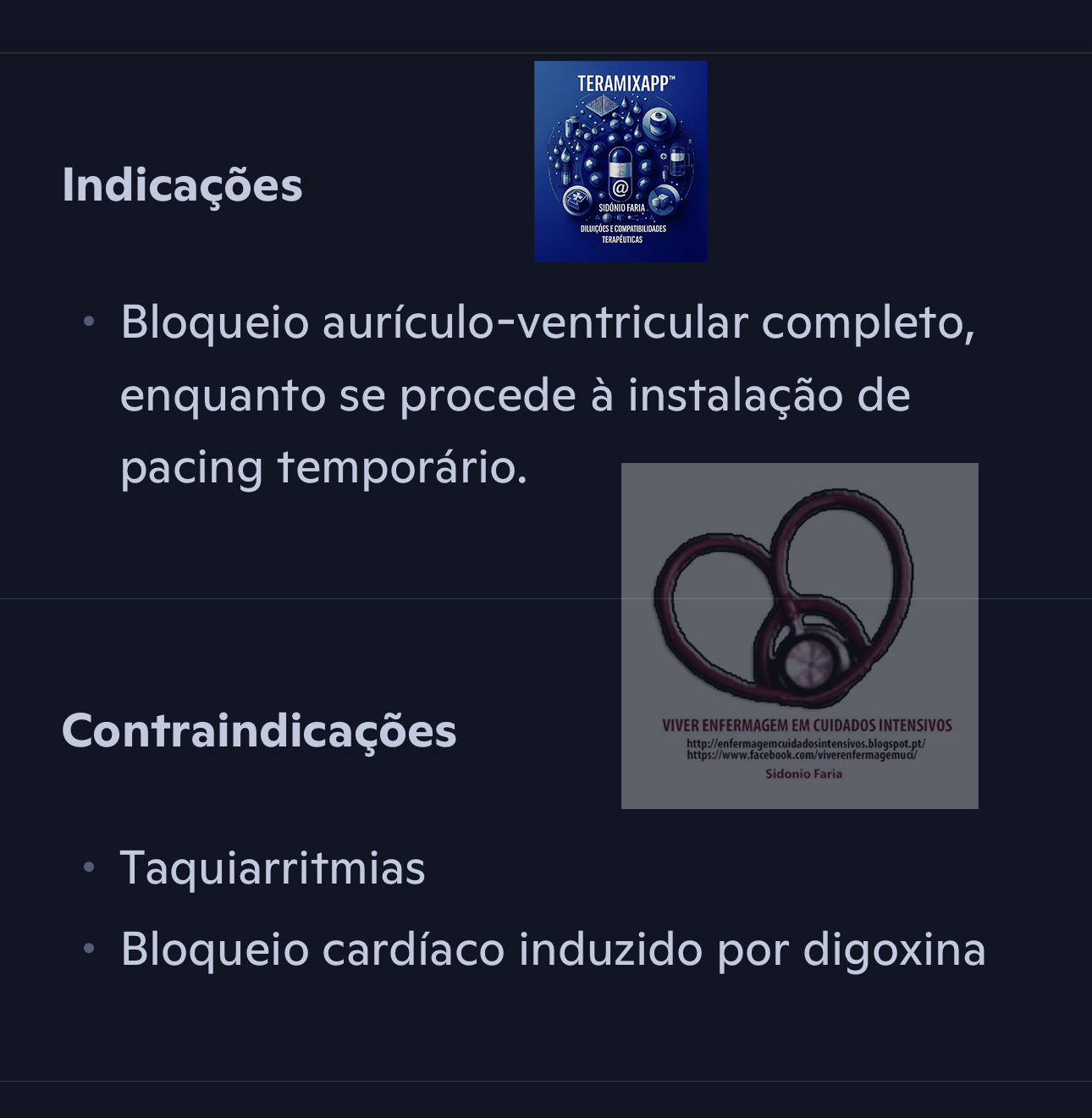 • Bloqueio aurículo-ventricular completo, enquanto se procede à instalação de pacing temporário.